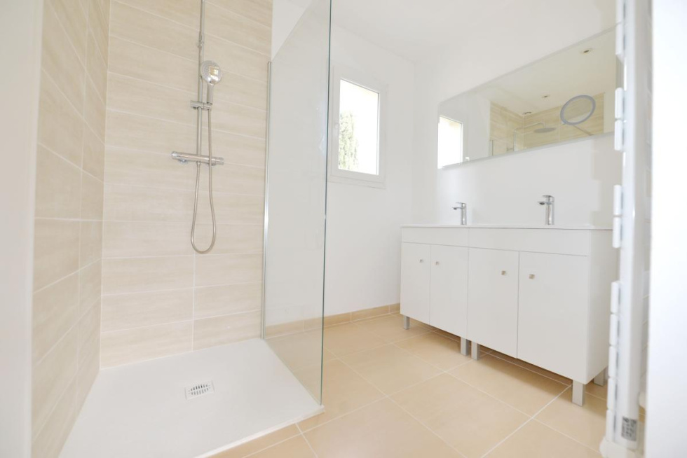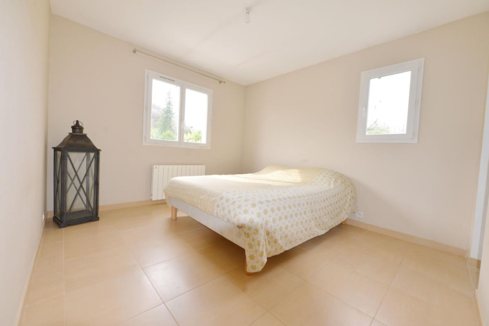 CHATEAUNEUF Idéalement située proche de tous commerces, écoles, bus Maison quatre pièces, de plain pied, lumineuse, sur un terrain plat de 2500 m2 piscinable. Vous disposez d'une entrée avec vestiaire, d'un spacieux espace séjour salle à manger donnant sur une terrasse au sud avec mezzanine, cuisine ouverte semi équipée, chambre parentale avec dressing et salle d'eau, deux chambres avec placard, salle de bains, wc invites, wc indépendant. Buanderie, Garage. Copropriété de 8 maisons avec syndic bénévole 400 euros de charges par an comprenant assurance et portail sécurisé. Double vitrage, chauffage au sol et convecteurs à inertie, volets roulants avec fermeture centralisée. Référence agence : 1719