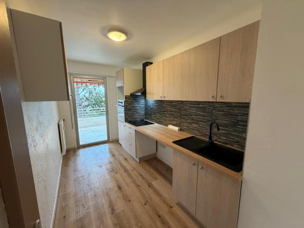 GRASSE PIERRE SEMARD, DOUBLE PARKING, CLIMATISATION - Notre vous proposons dans cette résidence de standing un appartement 3 pièces de 61.30m² traversant au 1er étage entièrement rénové composé : d'une entrée, un séjour donnant sur terrasse de 10.78 m², cuisine séparé équipée neuve donnant également sur la terrasse, deux chambres avec placard dont une donnant sur un balcon de 3.58 m², salle d'eau, et wc séparé. - Climatisation réversible - Eau chaude, froide et chauffage compris dans les charges - Parking double extérieur au sein de la résidence - Loyer: 860€ + 240€ charges = 1 100€ par mois charges comprises