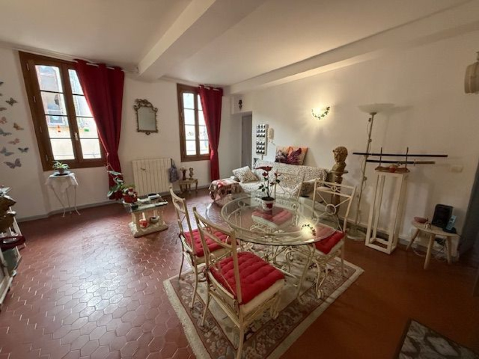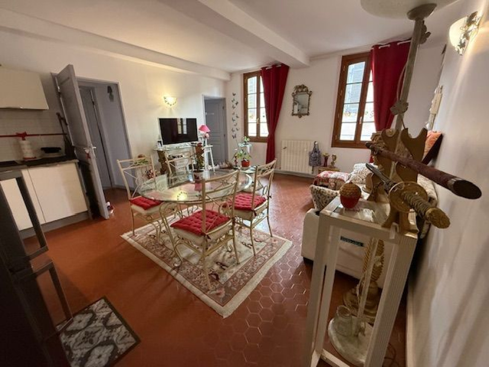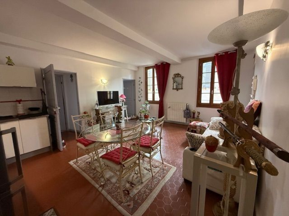 Appartement trois pièces en étage dans un ravissant immeuble du centre historique entièrement rénové. Façade refaite en 2025 et parties communes repeintes en 2020. Logement comprenant séjour avec cuisine ouverte, deux chambres, salle de bains avec wc. Double vitrage, chauffage central individuel, classe énergie D. Référence agence : 1724